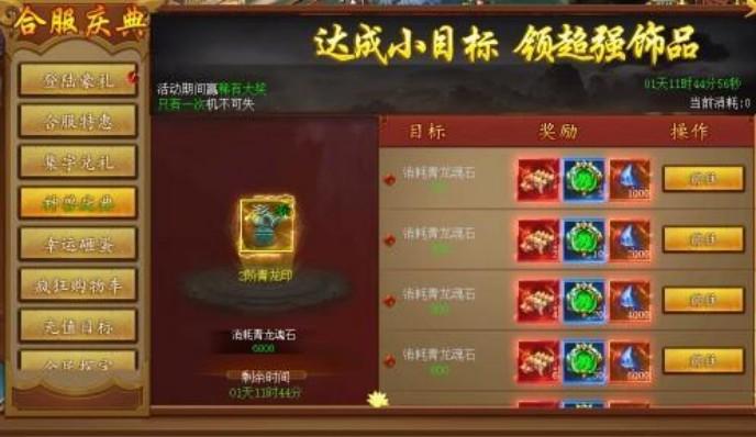 合服活动期间有青龙、白虎、朱雀、玄武达成奖励活动!
