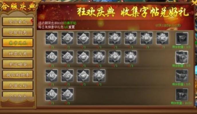 合服活动期间,所有怪物会掉落各类字帖,收集可兑换礼盒!
