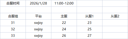 合服基本也是需要匹配上,举例如下,后续合服时也会给予推荐进程,平台可直接采用