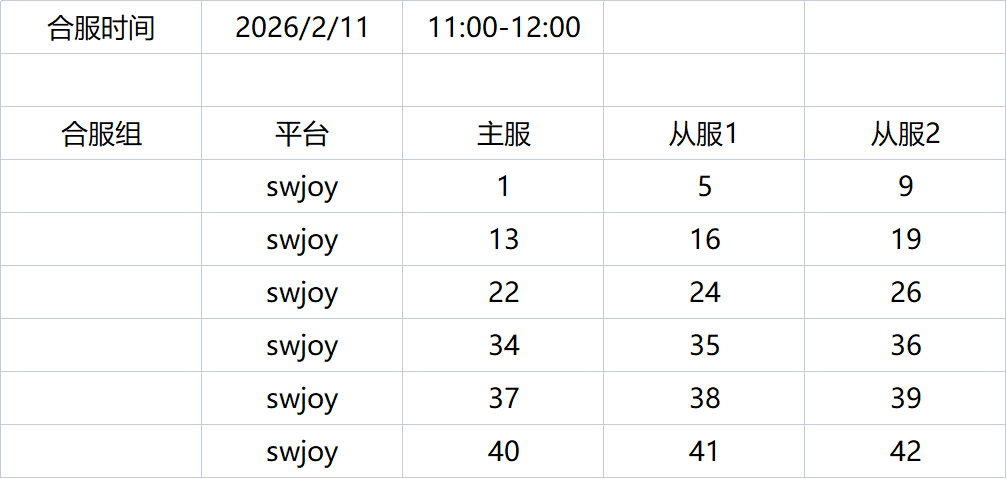 合服基本也是需要匹配上,举例如下,后续合服时也会给予推荐进程,平台可直接采用