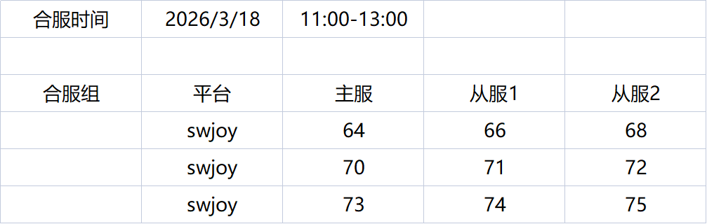 合服基本也是需要匹配上,举例如下,后续合服时也会给予推荐进程,平台可直接采用
