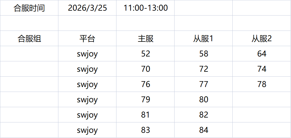 1、固定每周3上午11:00~12:00进行合服操作;
