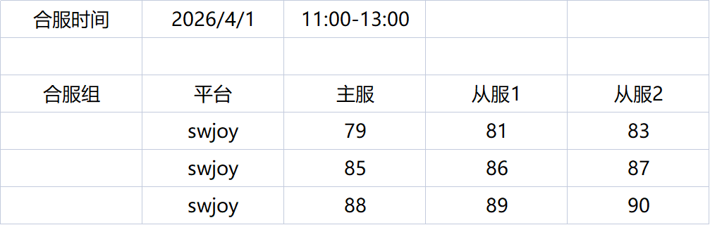 1、固定每周3上午11:00~12:00进行合服操作;
